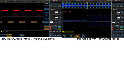 200Mpts/CH的深度存儲器,示波器即使在慢時基檔位下依然保持高的采樣率和快的波形捕獲率。全硬件視窗擴展,可局部放大觀察波形的細(xì)節(jié),為您提供波形全局與細(xì)節(jié)的同步顯示。