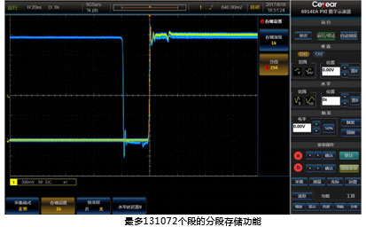 6914系列示波器標(biāo)配了分段存儲器采集,即使示波器工作在深度存儲模式下,依然可以保持快速的響應(yīng)速度和屏幕更新率,同時支持波形的錄制與回放功能。