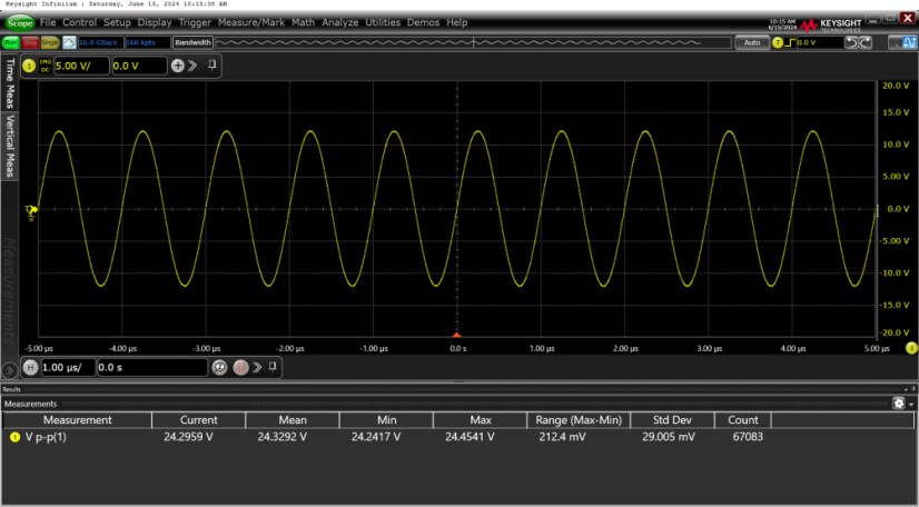 最大24Vpp(@開路)輸出幅度,內(nèi)置寬帶信號(hào)的幅頻響應(yīng)修正,可保證大瞬時(shí)帶寬信號(hào)輸出的平坦度。