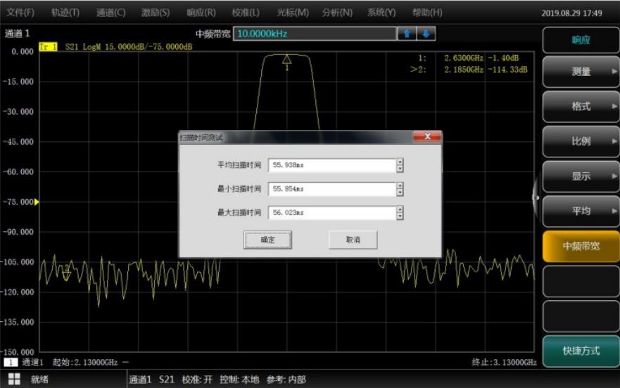 3671系列矢量網(wǎng)絡(luò)分析儀在全頻段201點(diǎn)掃描、600kHz中頻帶寬情況下掃描速度可達(dá)43ms(典型值),并提供一鍵式掃描時(shí)間測(cè)試功能,方便評(píng)估。