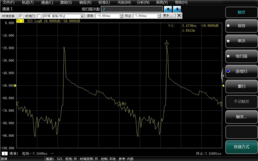 3671系列矢量網(wǎng)絡(luò)分析儀可通過(guò)配置時(shí)域測(cè)量選件實(shí)現(xiàn)測(cè)量結(jié)果頻域和時(shí)域之間的切換,用以確定器件、夾具或者電纜中的不連續(xù)點(diǎn)位置,實(shí)現(xiàn)故障點(diǎn)精確定位。