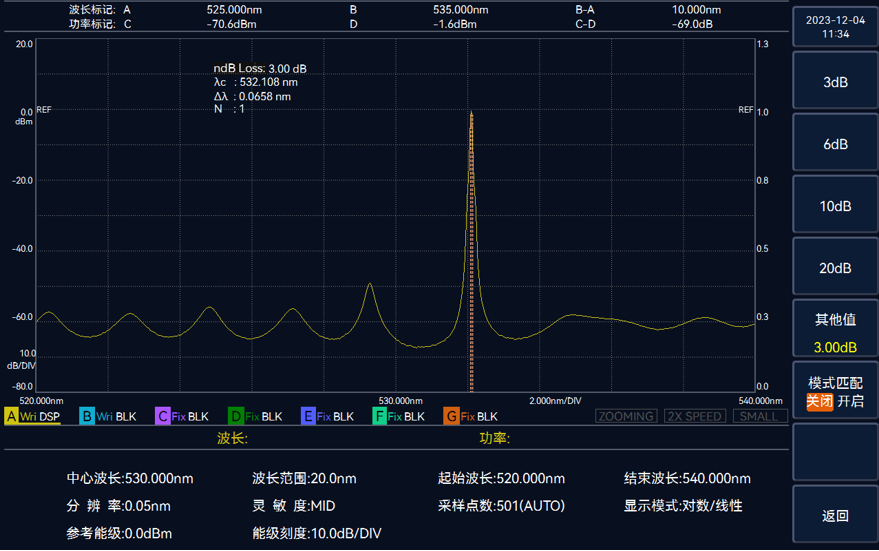 ndB損耗法測試中心波長和光譜帶寬