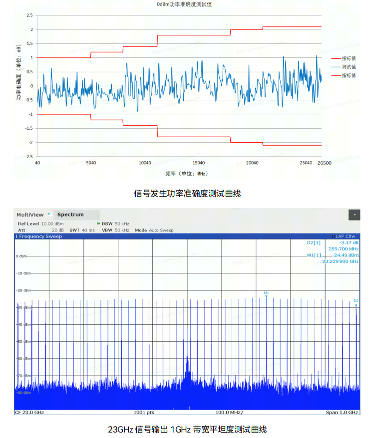23GHz信號(hào)輸出1GHz帶寬平坦度測(cè)試曲線