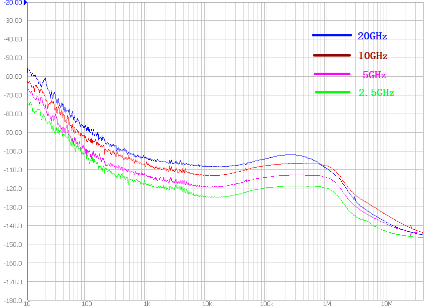 優(yōu)異的相位噪聲指標(biāo):-110dBc/Hz@10kHz(10GHz載波,典型值1)