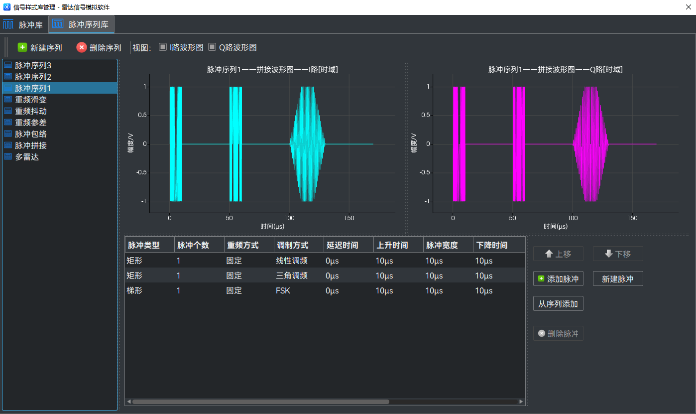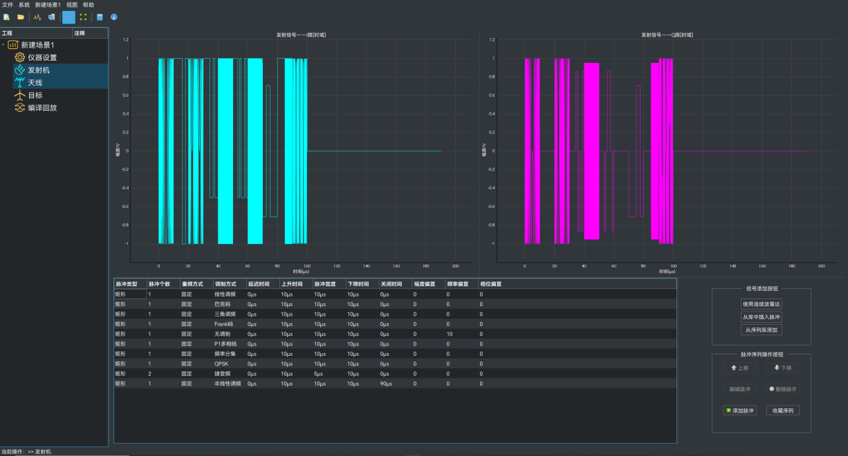 脈內(nèi)多調(diào)制及同時(shí)到達(dá)多脈沖信號(hào)模擬功能;
