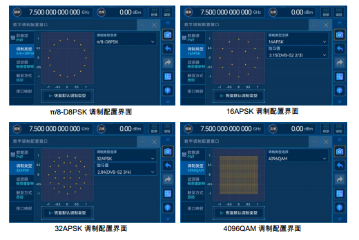 標(biāo)配30多種標(biāo)準(zhǔn)數(shù)字調(diào)制樣式實(shí)時(shí)產(chǎn)生