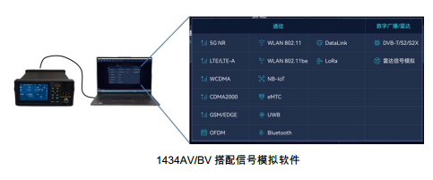 1434AV/BV矢量信號(hào)發(fā)生器搭配信號(hào)模擬軟件,可產(chǎn)生5GNR、LTE、WCDMA、GSM、WLAN、LoRa、藍(lán)牙等多種通信協(xié)議信號(hào),并自動(dòng)下載播放。
