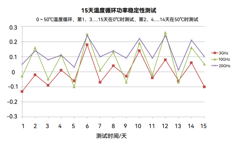 輸出信號(hào)的頻率、功率都具有非常高的穩(wěn)定性。時(shí)基老化率±5×10-8/年,10MHz高穩(wěn)時(shí)基一年變化不到0.5Hz。不僅具有優(yōu)異的輸出功率準(zhǔn)確度,功率穩(wěn)定度也非常出色,在0℃到50℃溫度循環(huán)的環(huán)境中連續(xù)開機(jī)15天,相同溫度下功率變化小于0.2dB,功率溫度變化率小于0.01dB/℃。