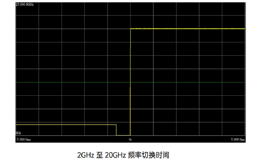 1436可在全頻段內(nèi)實(shí)現(xiàn)快速頻率切換,實(shí)測(cè)頻率切換時(shí)間0.67ms,可滿足高速測(cè)試需求。