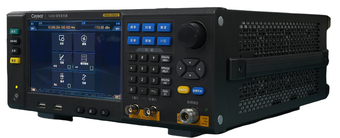 1435系列信號發(fā)生器基于創(chuàng)新的技術(shù)實現(xiàn)了性能、經(jīng)濟性和體積重量的平衡設(shè)計。具有優(yōu)良的頻譜純度,單邊帶相位噪聲1GHz載波@10kHz頻偏達到-136dBc/Hz,10GHz載波@10kHz頻偏達到-116dBc/Hz;具有高功率輸出和大動態(tài)范圍,最大輸出功率可達20dBm@20GHz,動態(tài)范圍大于150dB;可實現(xiàn)快速頻率切換,頻率切換時間1ms,縮短測試時間提高測試效率,滿足海量數(shù)據(jù)測試需求;具有性能優(yōu)異的模擬調(diào)制、脈沖調(diào)制功能。采用先進的頻率合成和射頻通道信號處理技術(shù),獲得高性能的同時降低了成本。具有7寸高靈敏度觸摸LED屏,同時支持觸摸屏、面板按鍵、旋轉(zhuǎn)按鈕、外接鼠標鍵盤等多種操作方式,操作體驗全面升級。3U便攜式機箱結(jié)構(gòu),體積小重量輕,便于攜帶。1435系列信號發(fā)生器既可以滿足研發(fā)階段對性能測試的需求,也可以滿足生產(chǎn)階段對高效率測試的需求。