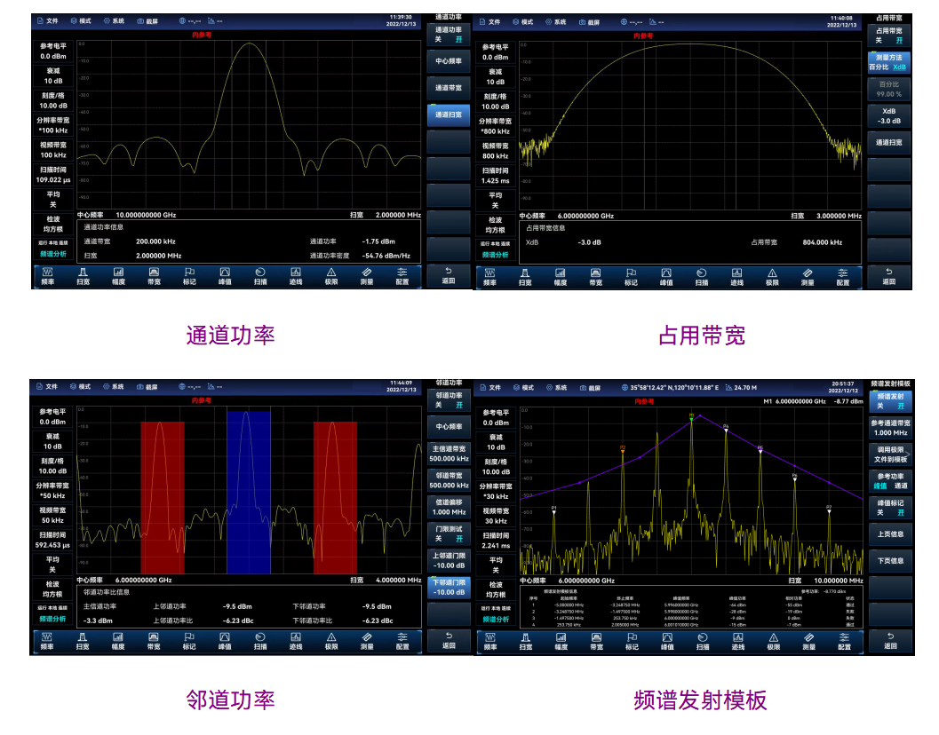 多種智能測量功能:通道功率、占用帶寬、鄰道功率、頻譜發(fā)射模板、載噪比、諧波失真、雜散發(fā)射模板等;