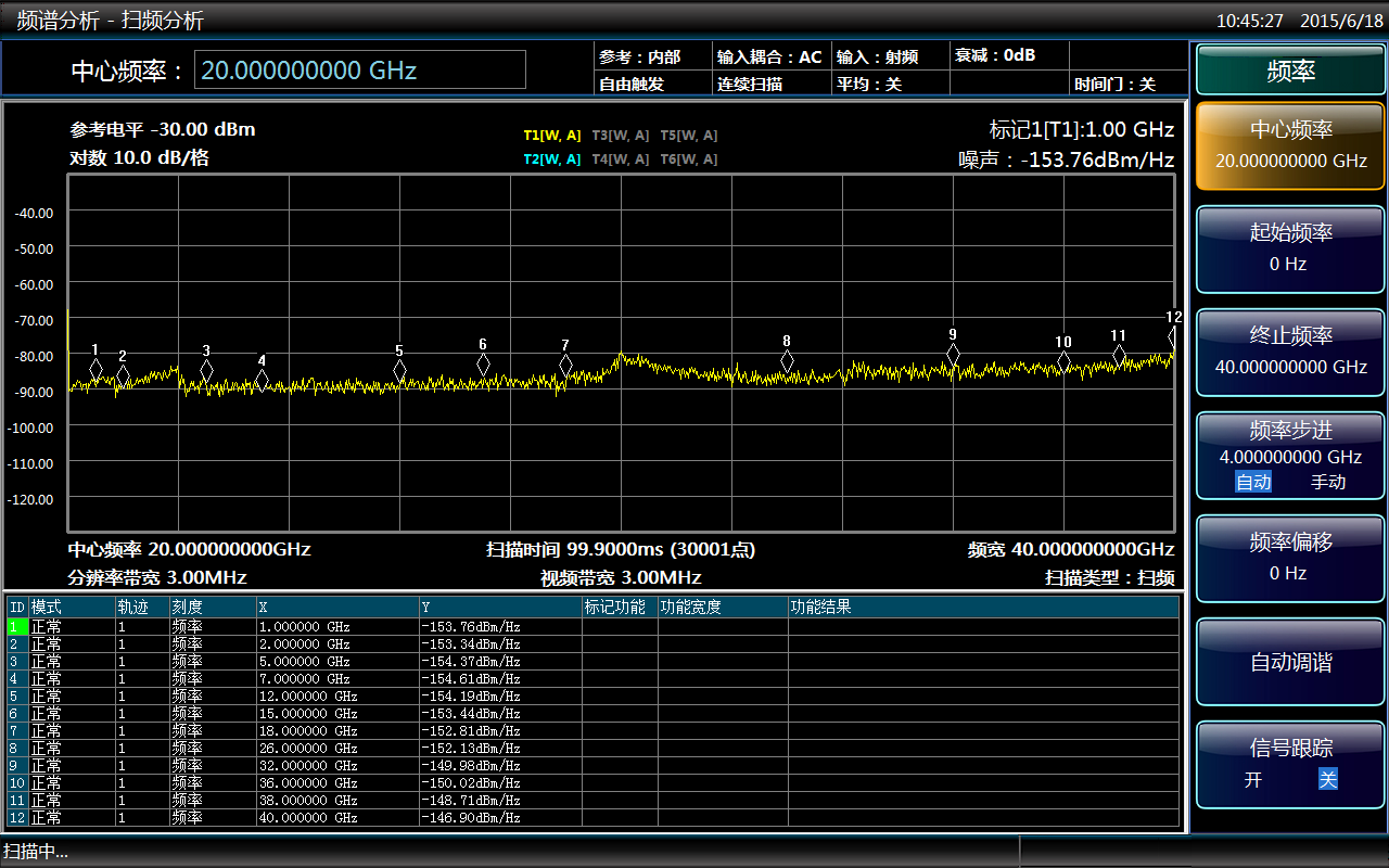 1GHz顯示平均噪聲電平典型值-156dBm/Hz,配置前放后典型值為-167dBm/Hz