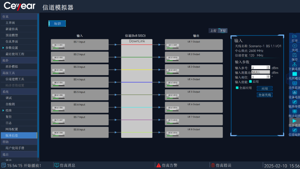 通道收發(fā)頻率、功率等參數(shù)直觀顯示,并配有相應的物理連接示意圖,方便用戶連接操作。支持多種形式的信道模型參數(shù)設置,包含用戶自定義、標準信道模型、模型文件導入等。